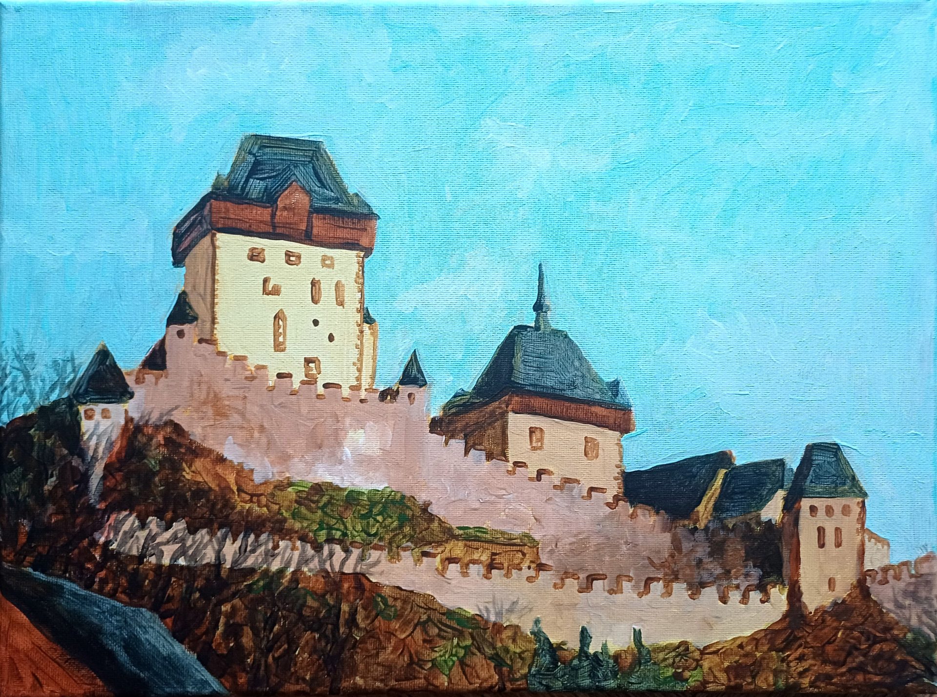 Karlstejn Castle; Acrylic on canvas, 30×40 cm; 2000 CZK